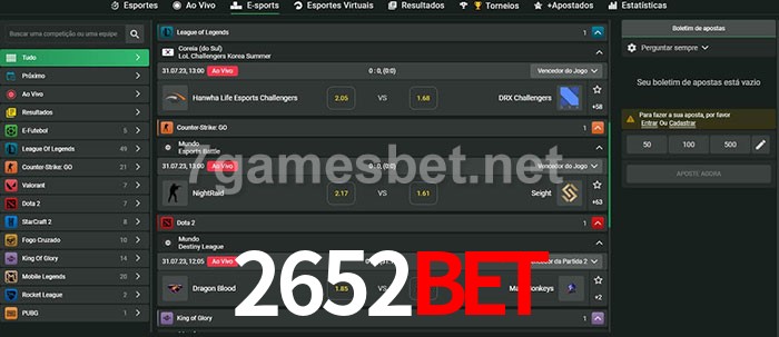 O 2652bet oferece uma grande seleção de opções de apostas em e-sports com probabilidades competitivas